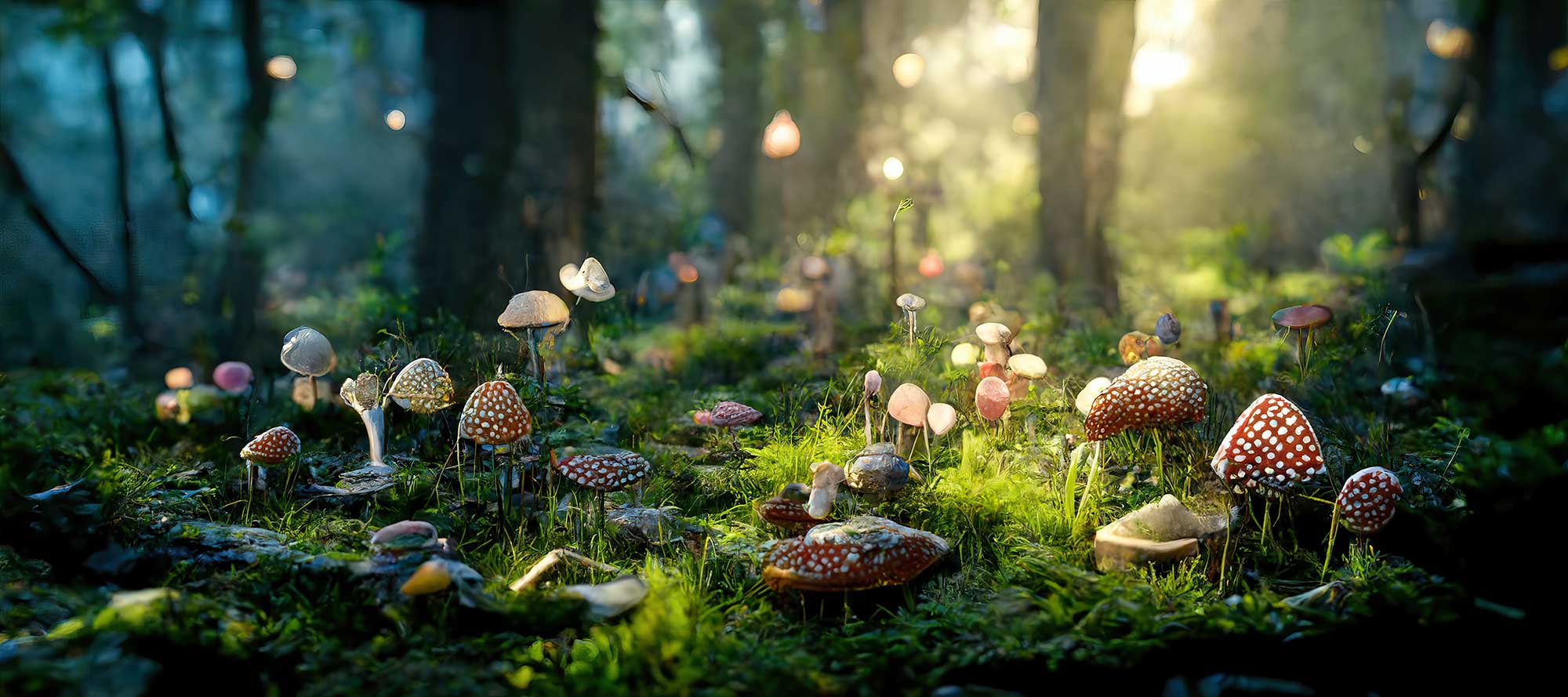 “Ruhige Nebelnacht in mysteriösem, fantastischem Wald.”